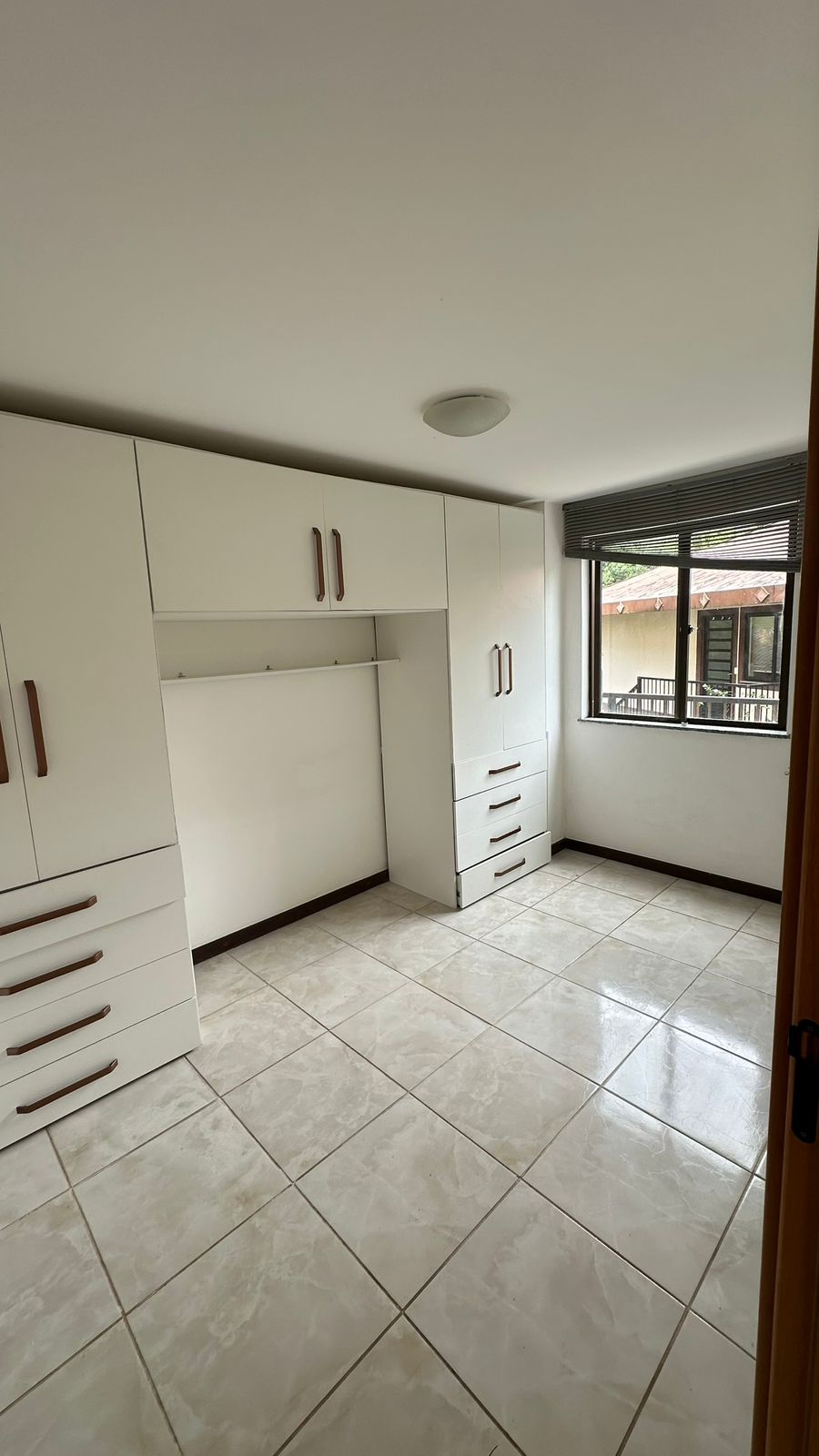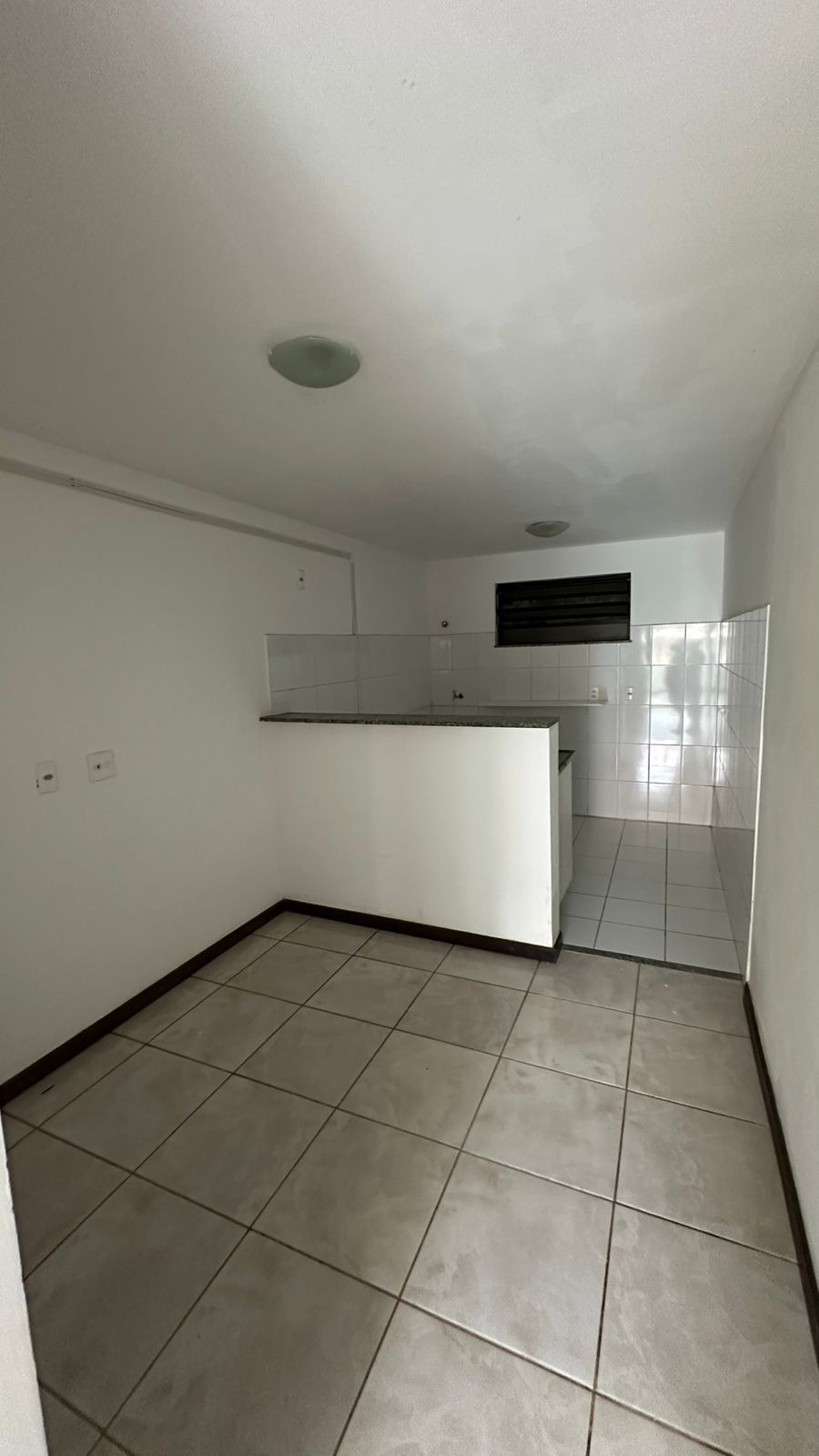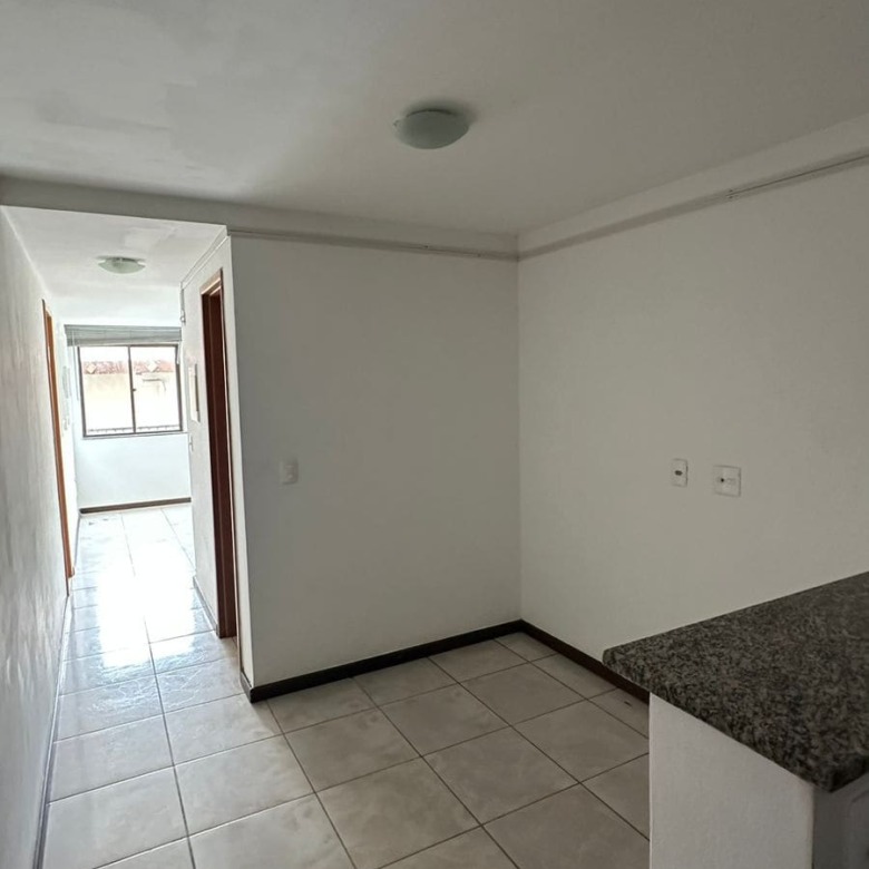 Ambientes com piso frio em ótimo estado, cozinha funcional estilo americana e quarto com excelente espaço de armazenamento.