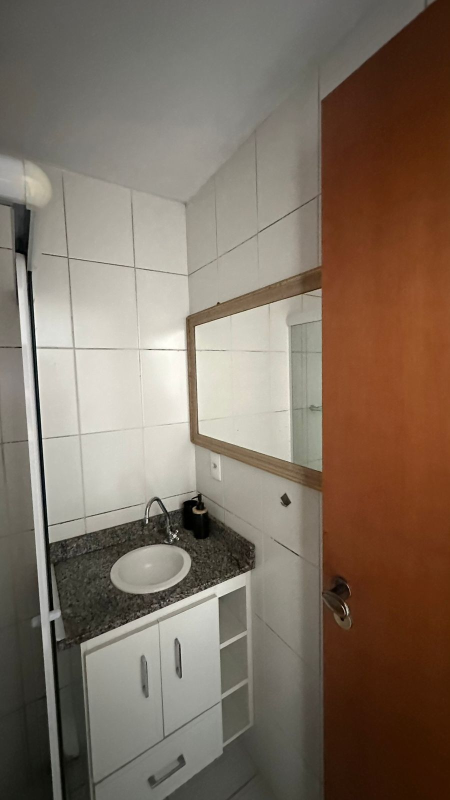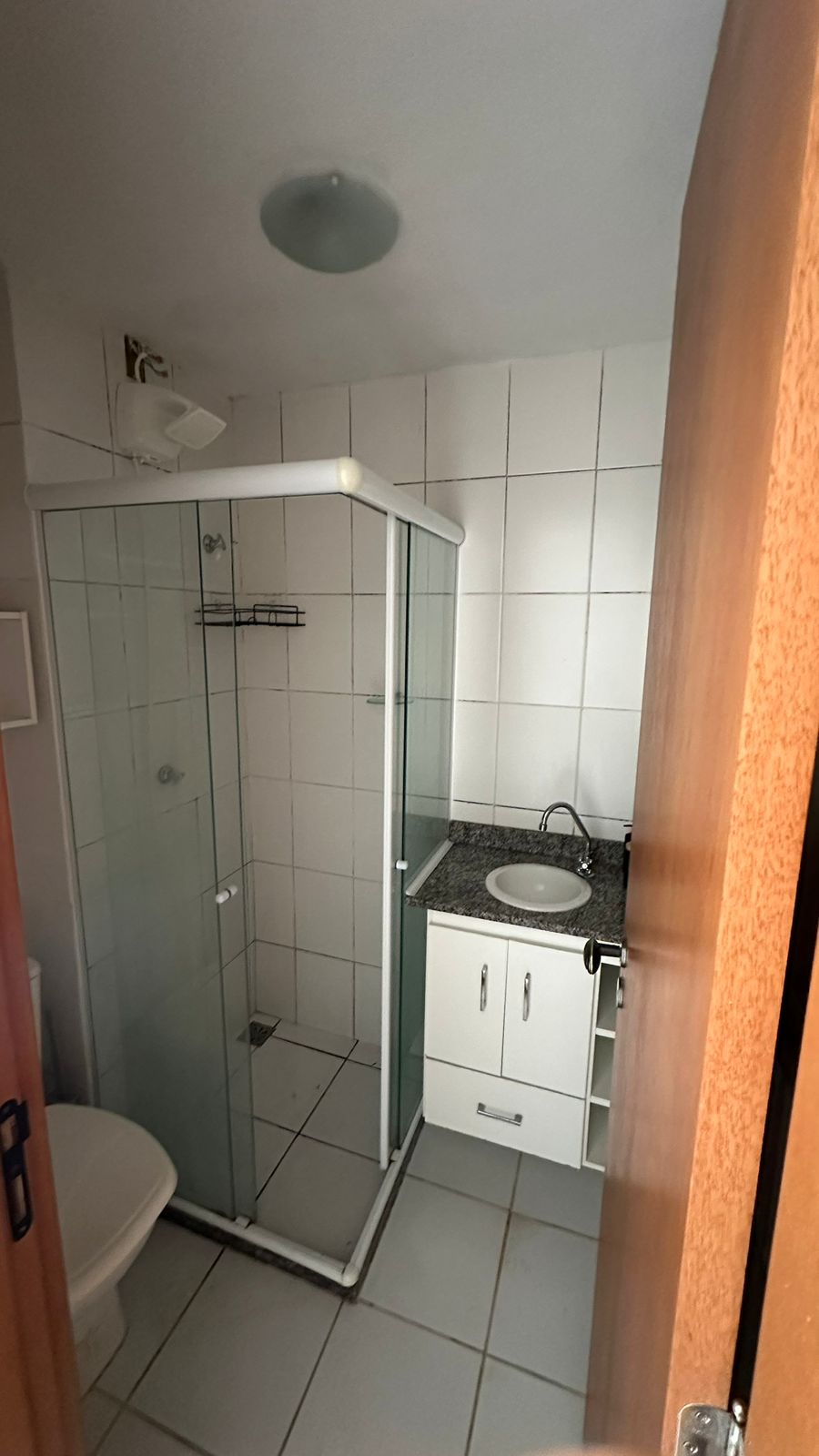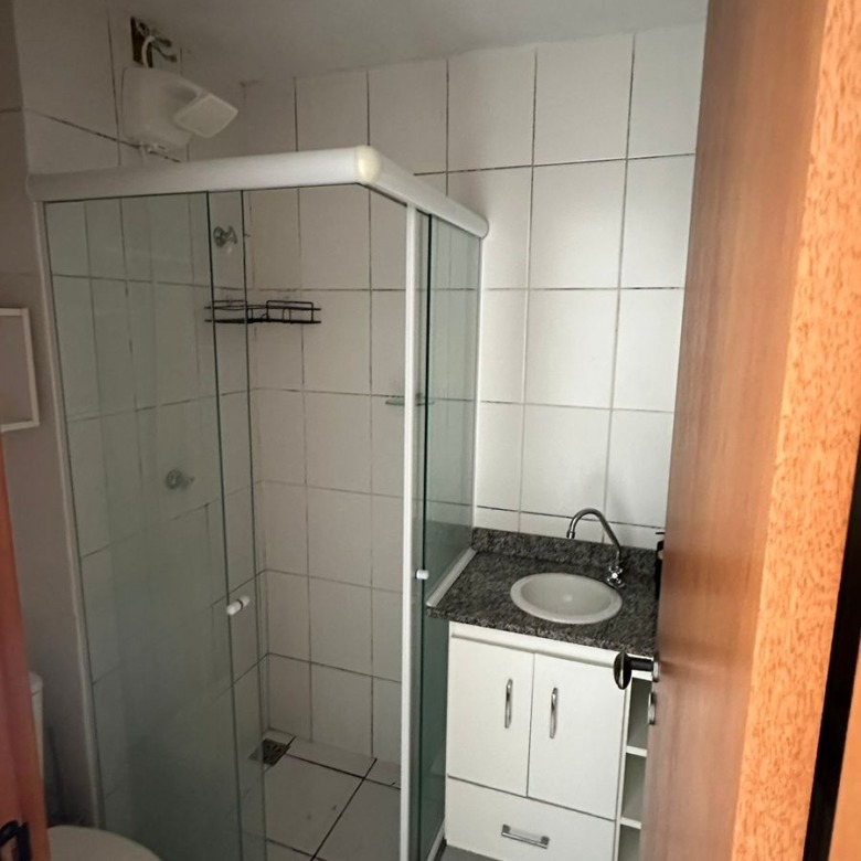 • Banheiro com box em vidro e armário