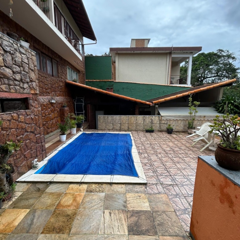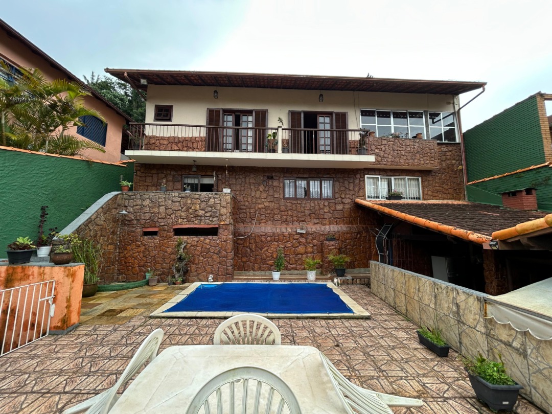 Na área externa, a casa oferece um excelente espaço de lazer com piscina, ampla área ensolarada, área gourmet com churrasqueira e banheiro, além de quartinho para guardados. Este espaço possui entrada independente.