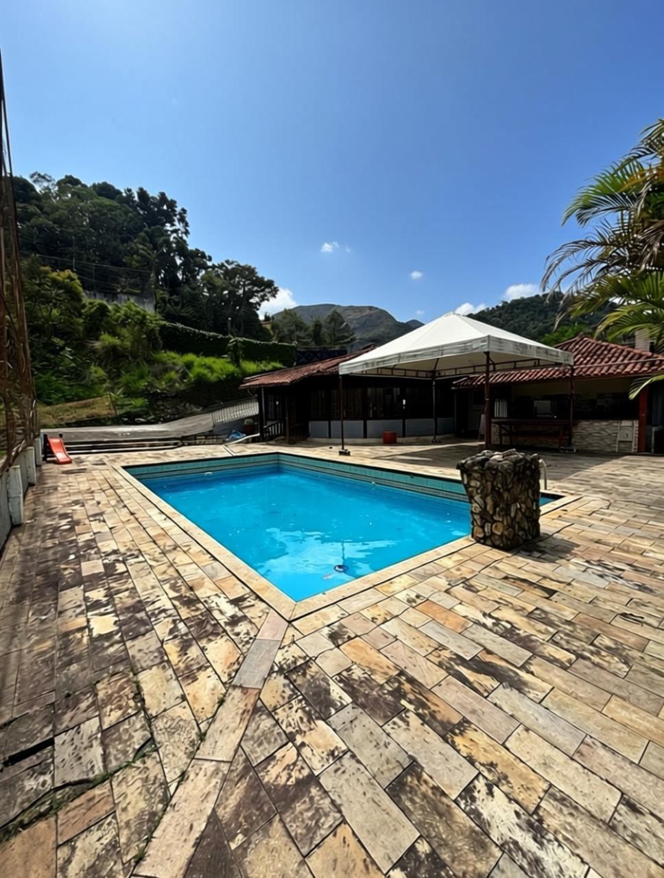 Casa com terreno plano à venda, com 2.800m² de área total, excelente visibilidade e fácil acesso. Atualmente, o espaço é utilizado para locação de eventos. A casa foi transformada num salão de festas com cozinha e 2 banheiros e conta com piscina, quadra de grama, área gourmet com churrasqueira e amplo estacionamento. O terreno é totalmente aproveitável, sendo adequado para construção residencial ou comercial. Aceita permuta.