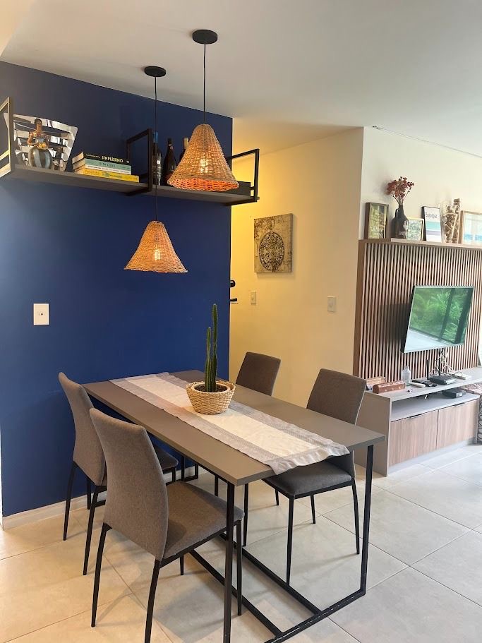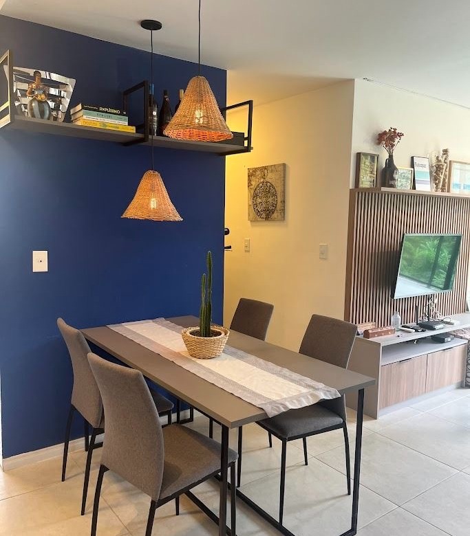 Composto por 2 quartos, sendo 1 suíte, banheiro social, sala, cozinha, área de serviço e varanda.
