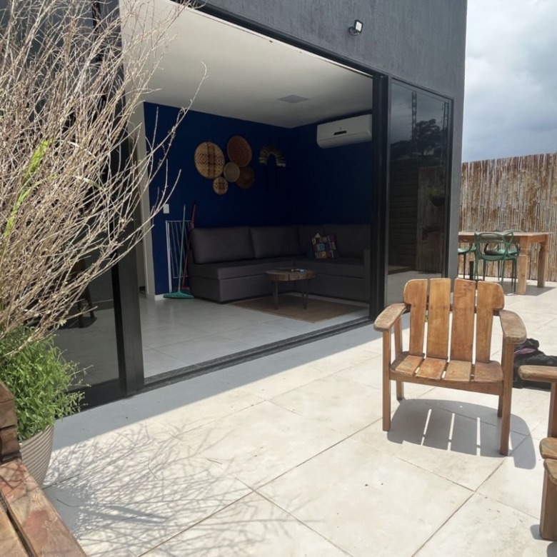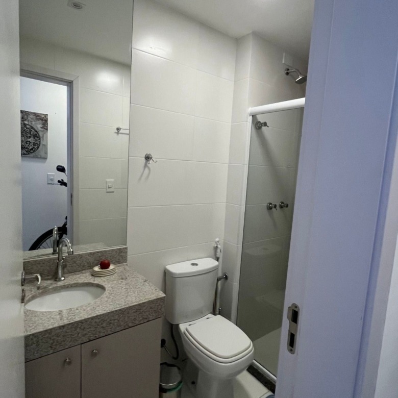 Possui uma sala fechada com banheiro, que pode ser facilmente convertida em um 3º quarto com suíte, além de varanda externa ampla com churrasqueira e pia de apoio.